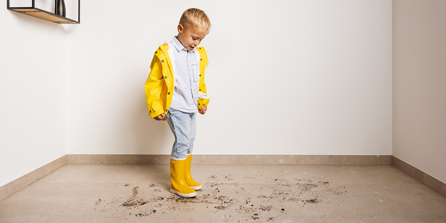 Zand en zout werken als schuurpapier. Veeg of stofzuig daarom dagelijks de inkomzone. Gebruik eventueel een vochtige dweil met een neutraal reinigingsproduct om zoutresten te verwijderen.